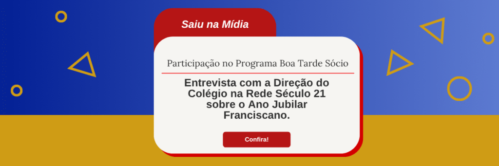 Na última sexta-feira, 10 de abril, o Colégio Franciscano Ave Maria participou ao vivo do programa Boa Tarde Sócio, da Rede Século 21, em Valinhos. Durante a entrevista, representantes da Mantenedora e da Direção do Colégio partilharam importantes reflexões sobre a missão dos educadores, a relevância dos valores cristãos na formação de crianças e jovens […]